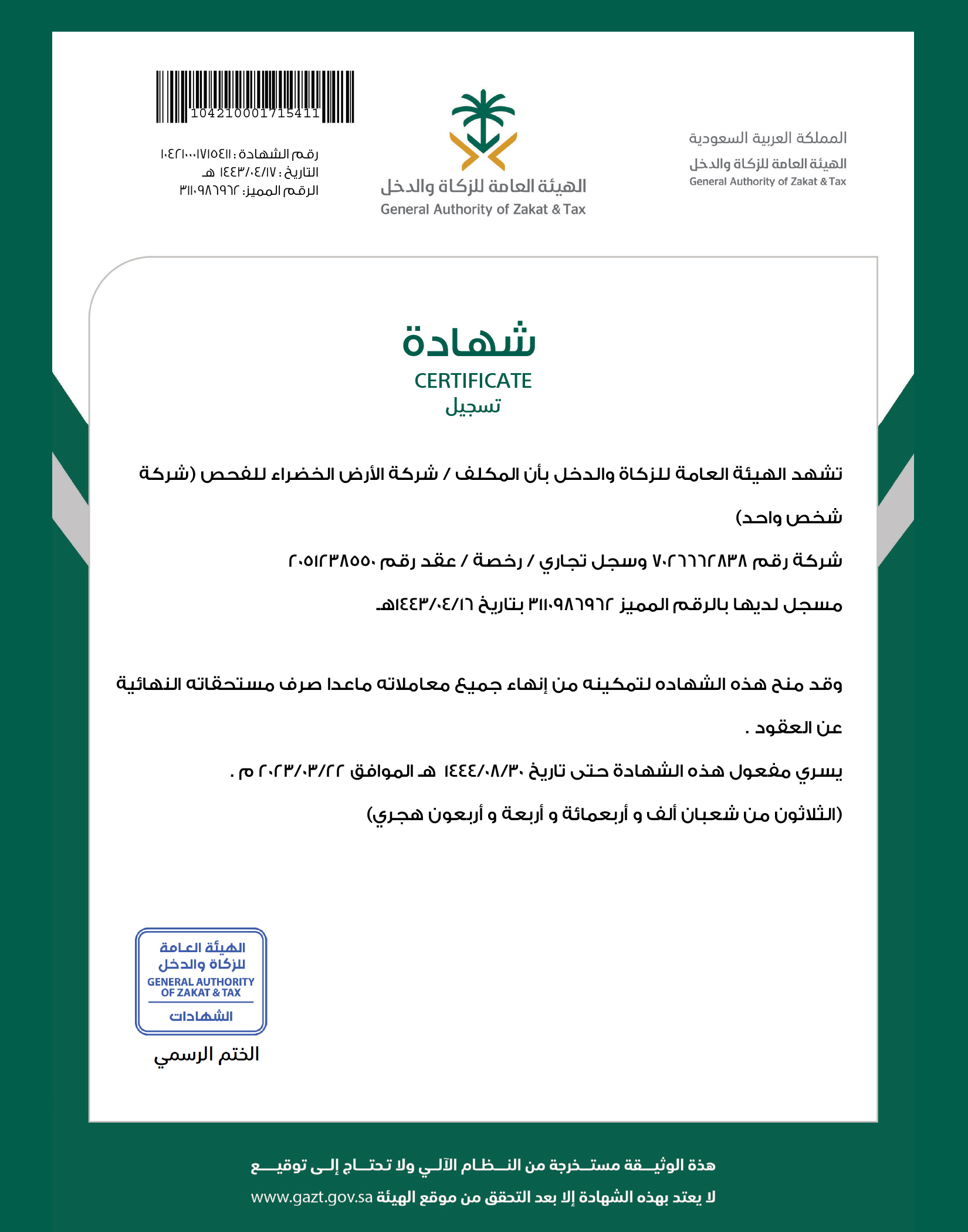 Global Certificate